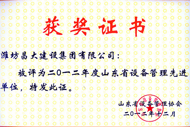 集團(tuán)公司榮獲山東省設(shè)備管理先進(jìn)單位