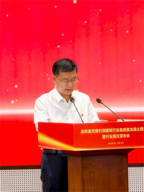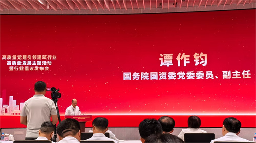 2025年7月7日下午,全國(guó)高質(zhì)量黨建引領(lǐng)建筑行業(yè)高質(zhì)量發(fā)展主題活動(dòng)暨行業(yè)倡議書發(fā)布會(huì)在北京中建財(cái)富國(guó)際中心召開,國(guó)務(wù)院國(guó)資委黨委委員、副主任譚作鈞,全國(guó)工商聯(lián)黨組成員、副主席汪鴻雁出席會(huì)議并發(fā)表重要講話。集團(tuán)黨委書記、董事長(zhǎng)徐鵬強(qiáng)出席會(huì)議并作表態(tài)發(fā)言。
